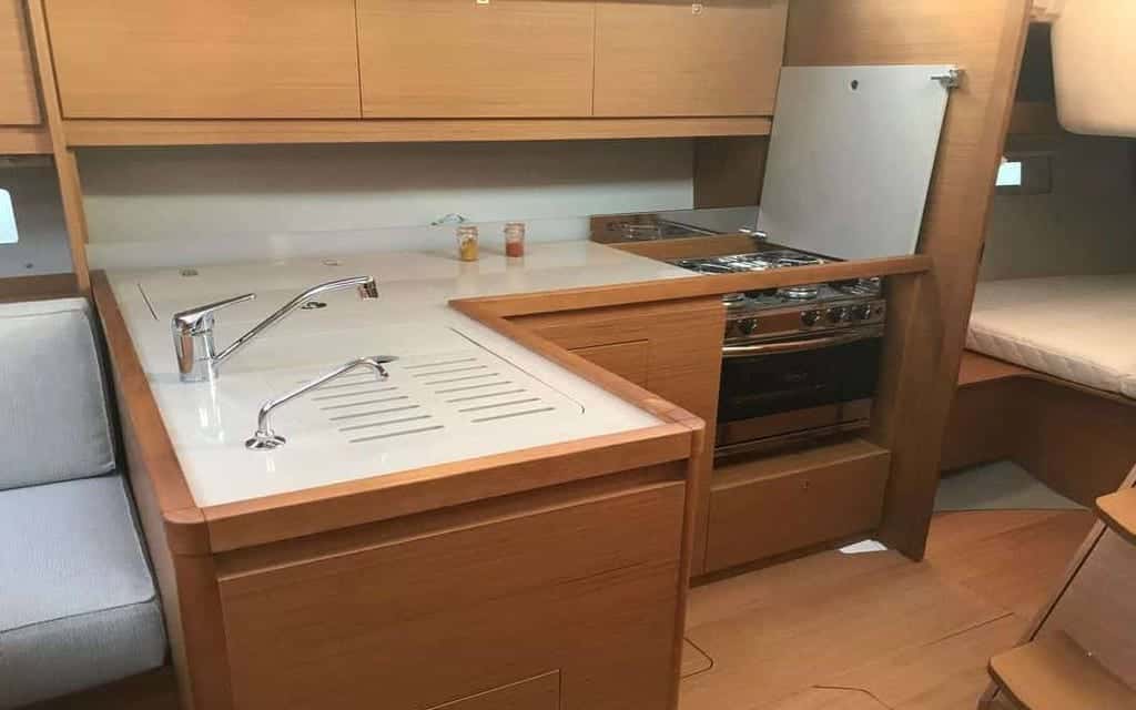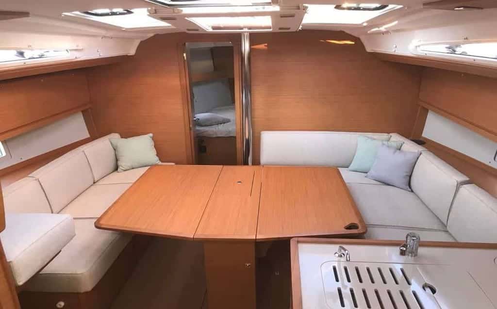 La vida a bordo fluye entre momentos de relax y aventura. Bajo el bimini, la bañera se convierte en el escenario perfecto para largas sobremesas, mientras la barbacoa y el wetbar celebran la sencillez de los sabores mediterráneos. El Dufour 390 es ideal para explorar la costa de Mallorca en compañía: hasta 8 personas pueden compartir el día en cubierta, sintiendo la libertad del mar y la complicidad de la travesía.