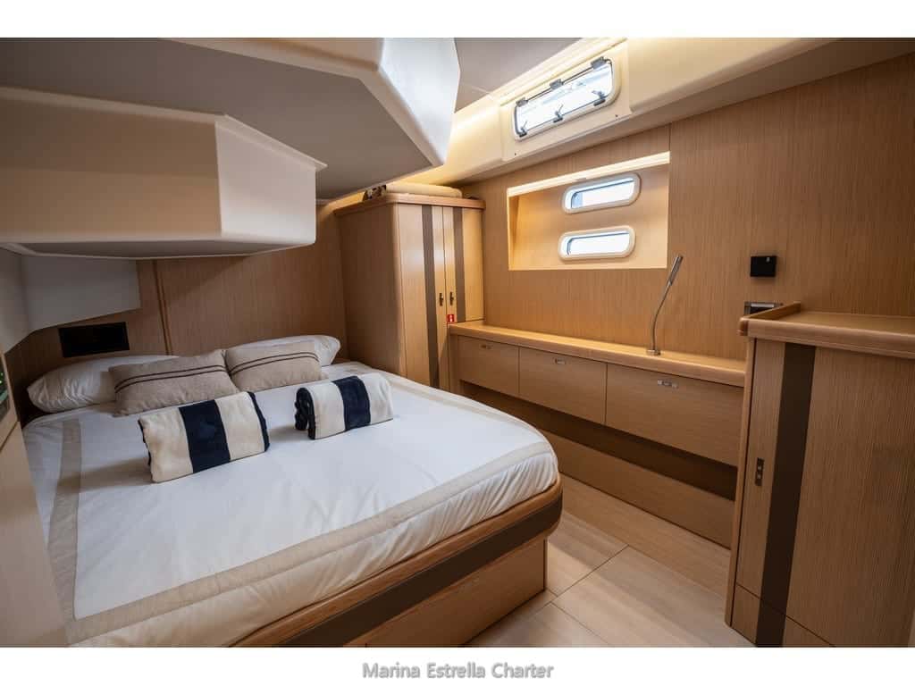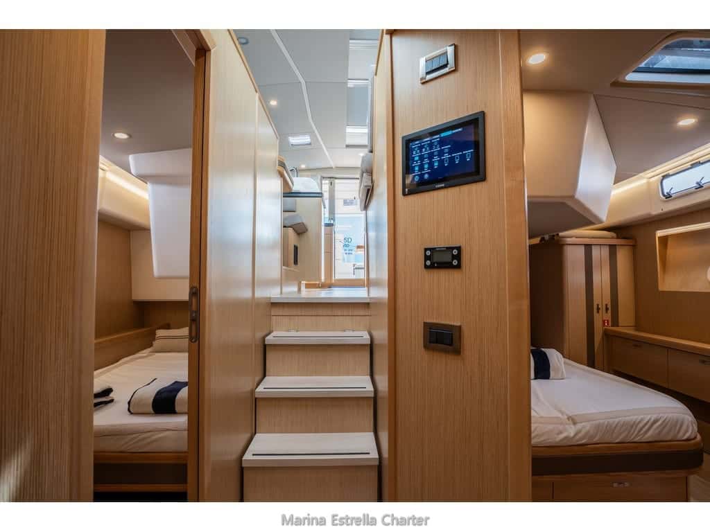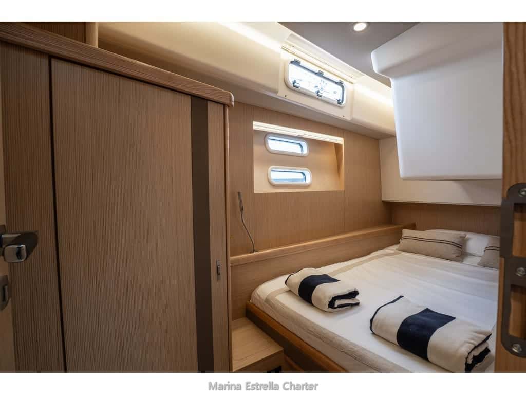 El Moody 54 revela su esencia en cada detalle, desde la amplitud y luminosidad de sus interiores hasta la generosidad de sus espacios exteriores, donde el Mediterráneo se convierte en un escenario íntimo y personal. Navegar en compañía —ya sea con hasta doce personas en una jornada diurna o seis privilegiados durante la noche— significa compartir momentos de calma y conexión, guiados siempre por una tripulación profesional que cuida cada detalle y anticipa cada necesidad.