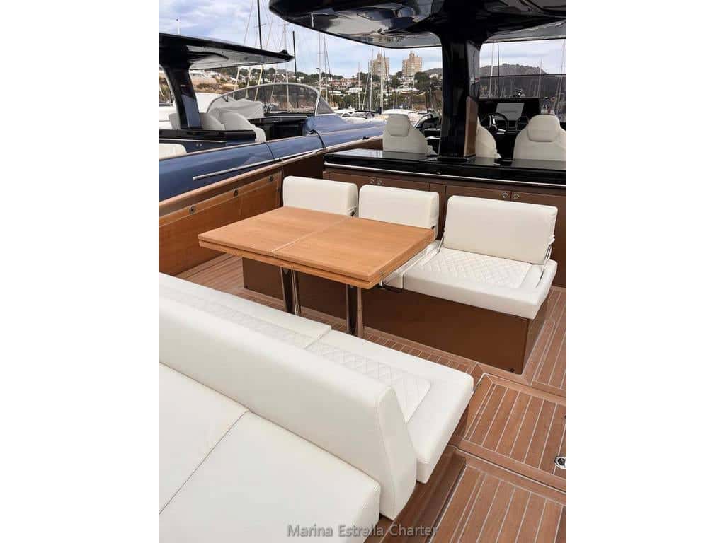 Diseñado para compartir momentos inolvidables, el Solaris Power 44 acoge hasta diez personas a bordo durante el día, envolviéndolas en una atmósfera de amplitud y confort. Bajo el hard top central, la zona de cocina y comedor invita a largas sobremesas al aire libre, mientras el suave vaivén del mar acompaña cada conversación. Los dos solariums, situados en proa y popa, se convierten en oasis privados para tomar el sol, leer o simplemente dejarse llevar por el murmullo de las olas.