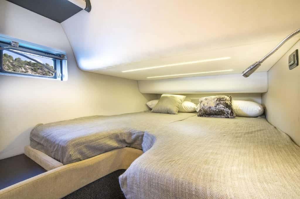 El diseño interior, refinado y cómodo, crea un ambiente donde el tiempo parece detenerse. Aquí, el alto nivel técnico del Windy Camira 39 se traduce en una navegación suave y ágil, perfecta para quienes buscan emociones al ritmo del viento y el sol. Cada rincón a bordo invita a relajarse, mientras el murmullo del mar acompaña cada conversación y cada instante compartido.